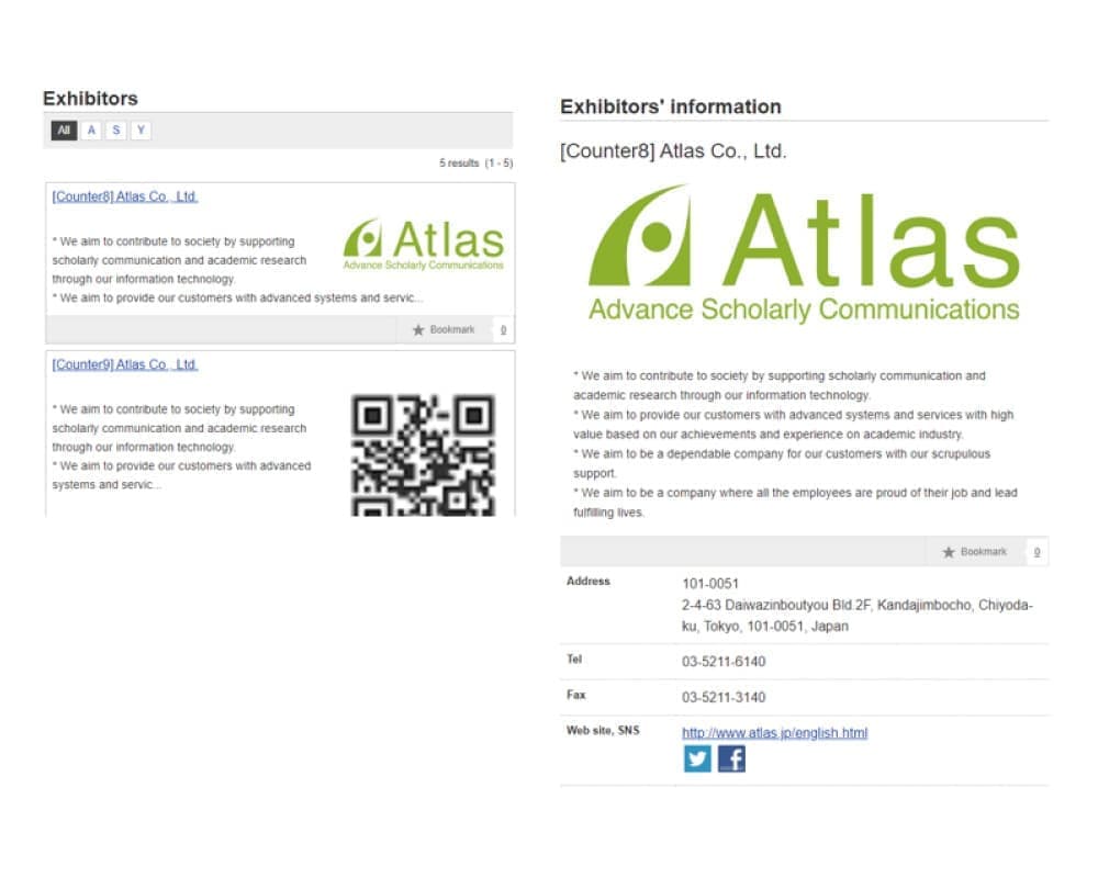 All the sponsors can set up an online booth using the system provided by Confit to post your company information and videos. By setting the link to online conference system, you can communicate interactively with participants.